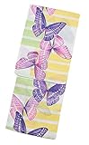 白地に黄緑色と淡い黄色の横ラインがあり、その上に大きな蝶々が描かれています。淡い色合いの中に紫色のきれいな蝶々が存在感のあるデザインです。